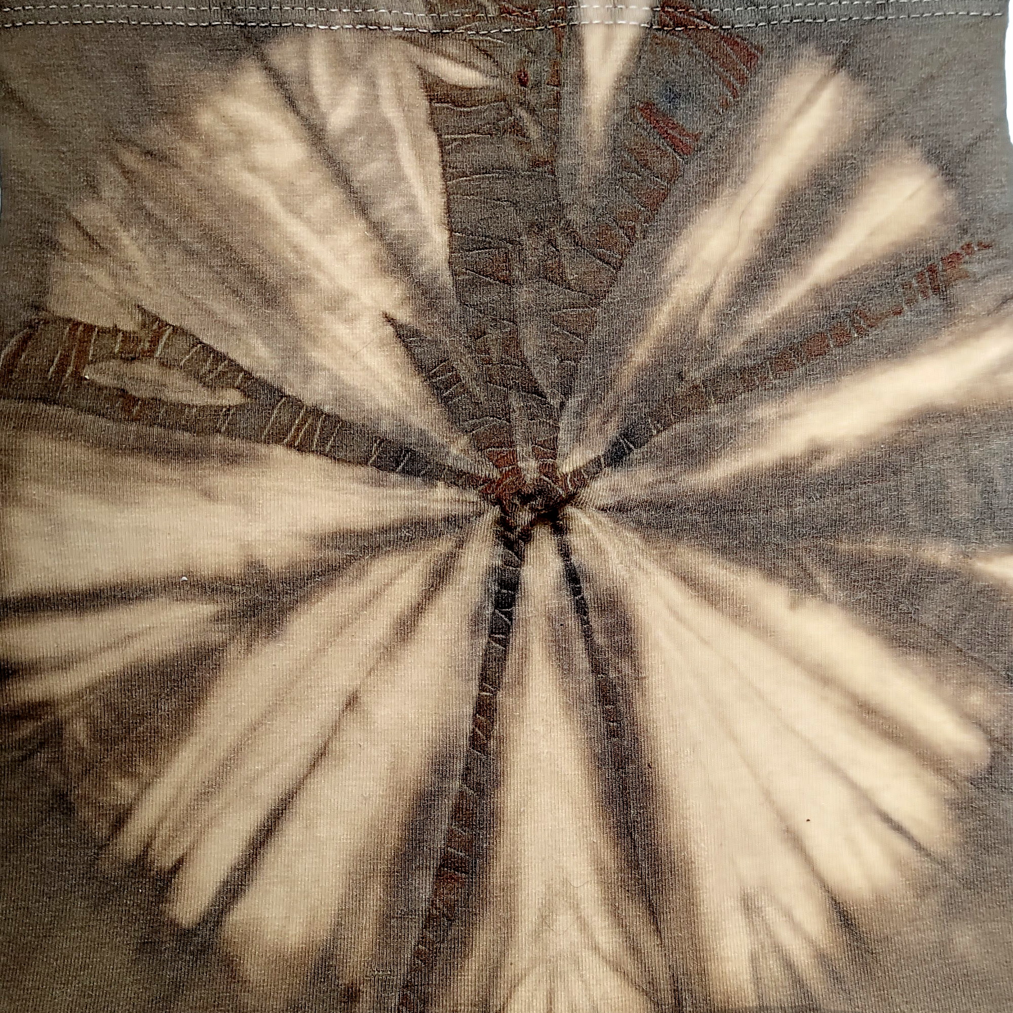 Imagen anterior Imagen siguiente Shibori por amarras. Amarra con alambre de hierro y teñido con tanino